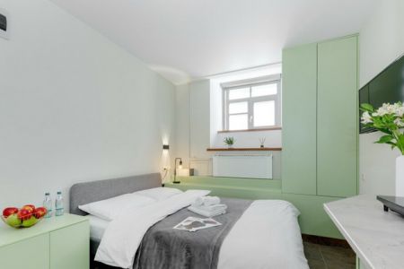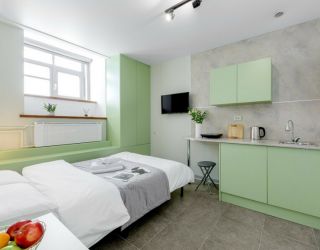 Пятиэтажное историческое здание, в котором разместились апартаменты расположено на набережной реки Фонтанки. В распоряжении гостей 1- и 2-местные номера на цокольном этаже. Везде предусмотрен кухонный уголок с варочной панелью, чайником и мини-холодильником, телевизор и высокоскоростной интернет, в персональном санузле – душ и туалетные принадлежности для гостей.